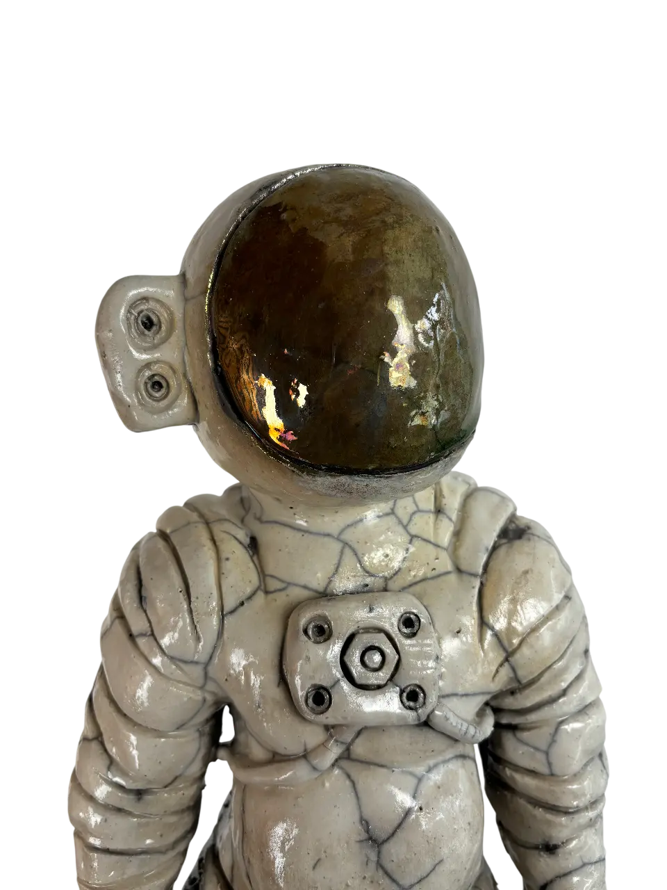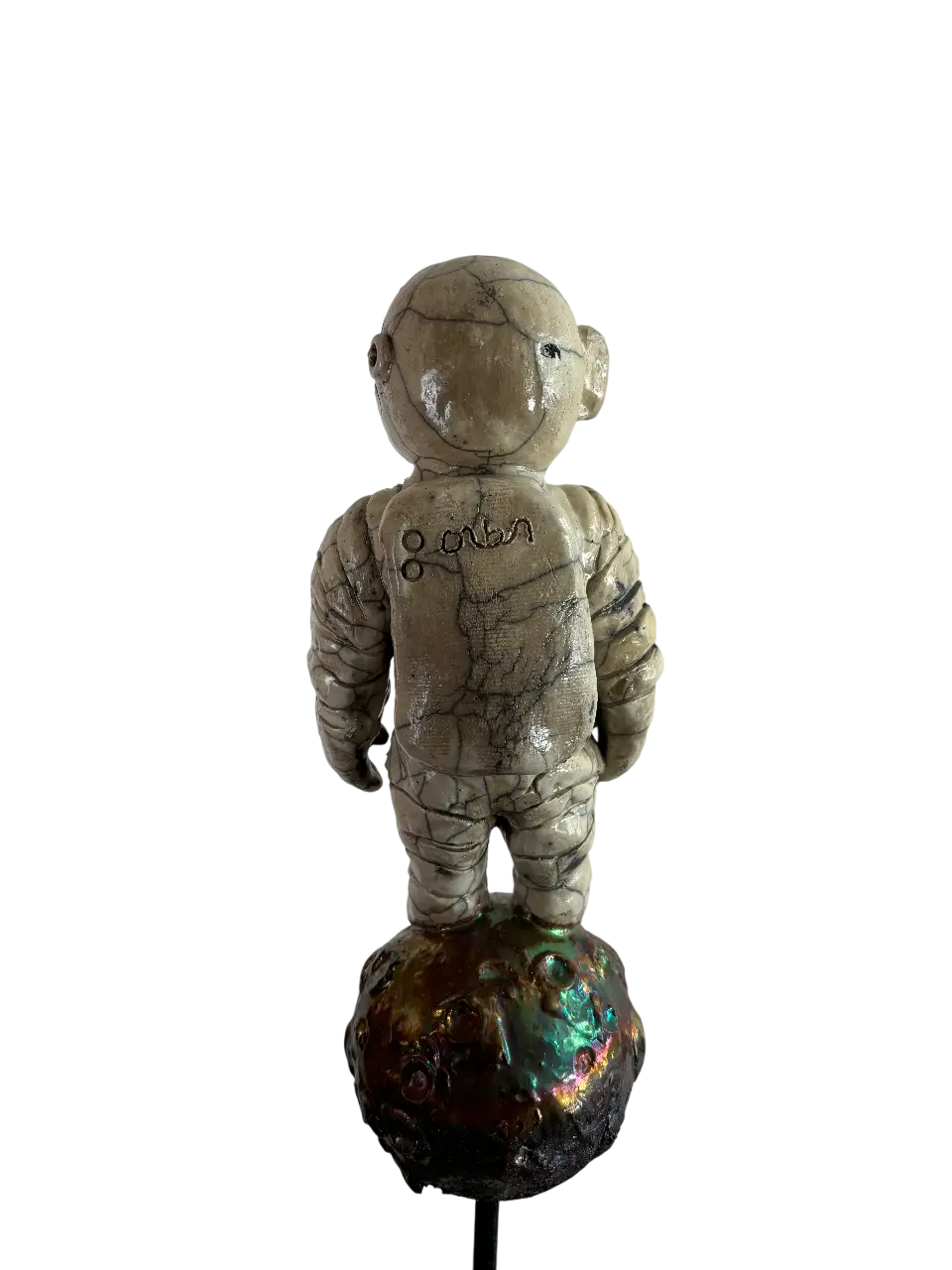 El hombre ya no es un viajero del espacio, sino su guardián: un Atlas moderno que carga no con el mundo, sino con sus propios sueños. La luna, reducida y serena, representa el límite de lo conocido; el astronauta, expandido, simboliza la conciencia que se atreve a desafiarlo.