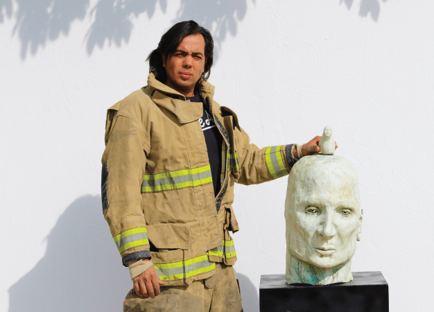 Araceli Morales presenta: De profesión abogado, por decisión artista. Nace en 1986 en Oaxaca, pero en 2017 el destino lo trajo a Puebla, a un taller en la capital del estado donde empezó a pintar en sus ratos libres, acompañado de grandes amigos artistas. Entonces incursionó en la escultura cerámica. Y es ahí donde desborda