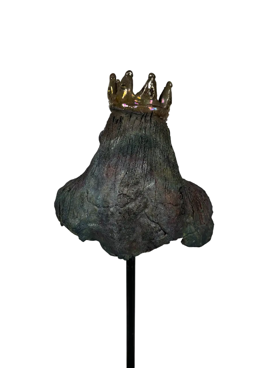 La corona brilla sobre la piel tensa, recordando que la verdadera autoridad proviene del instinto y del equilibrio con la naturaleza.